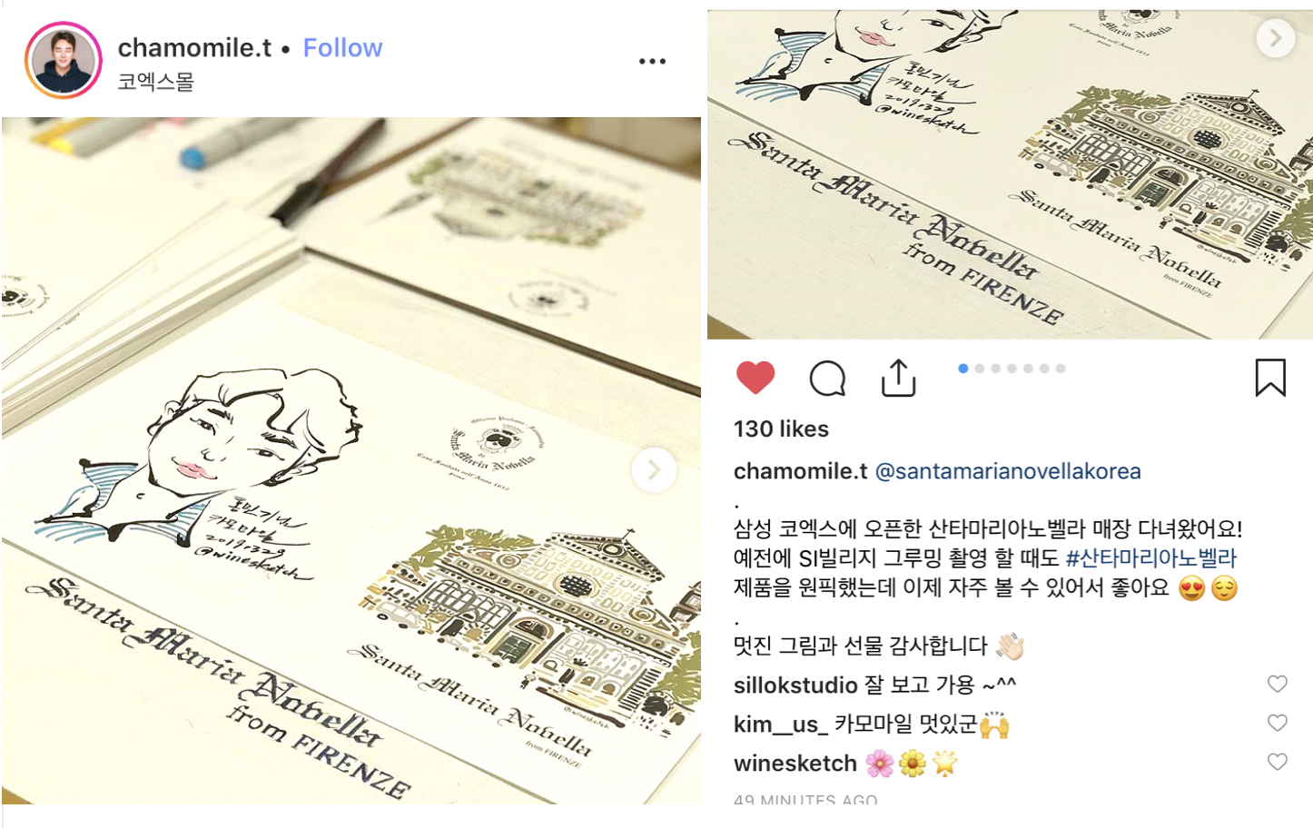 2019년  3월 29일 30일 산타마리아 노벨라 매장(코엑스 스타필드) 오프닝 이벤트 드로잉 작가로 초대받아 일러스트 작업과 1분 초상화 이벤트를 진행하였어요.